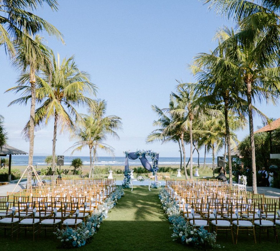 Nav and Oges chose the scenic Jeeva Saba Bali for wedding, exchanging vows under a bright but softly clouded sky. The venue, located right on