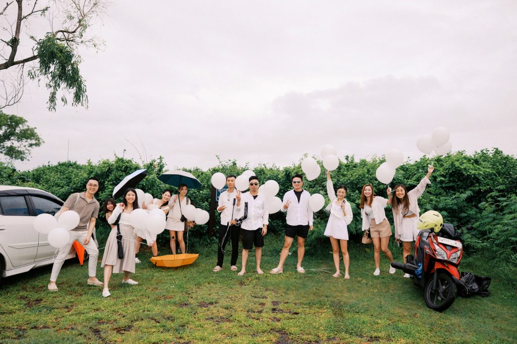 As the couple finally arrived, accompanied by their cheering friends who were in on the secret, the rain held its breath for the perfect moment. The partner dropped to one knee and with the beautiful New Kuta Golf panorama as their witness, she said YES! It was a beautiful, emotional moment, perfectly captured and celebrated by their friends, proving that with great planning and a little help from your best friends, every day is the perfect day for forever.