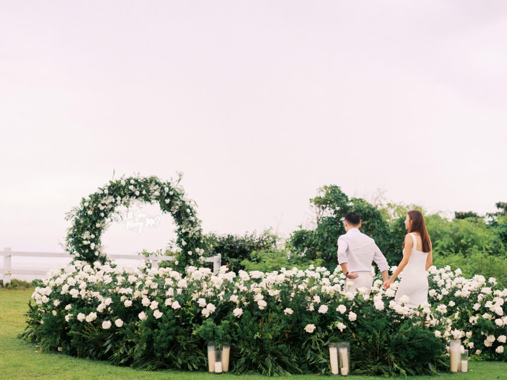 Want to see the beautiful floral arch up close, the drama of the rainy day setup, and the tear-jerking moment the ring came out? Don’t just imagine this perfect day—click the link to watch the full proposal vlog and experience the magic, the stunning New Kuta Golf views, and the joyful cheers of their friends for yourself! Trust us, you won’t want to miss seeing this beautiful Bali love story unfold.